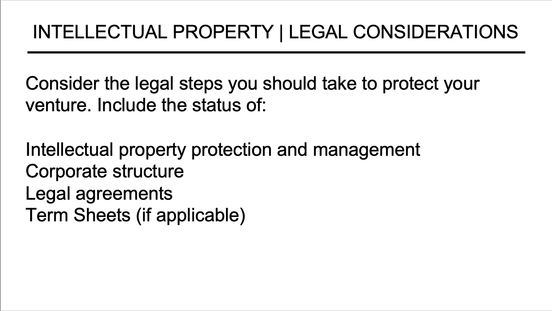 You can list any intellectual property you own. These assets include patents, trademarks, and copyrighted materials. Confirm that all intellectual property is legally assigned to the venture and that proper employee agreements are in place to continue said assignments.