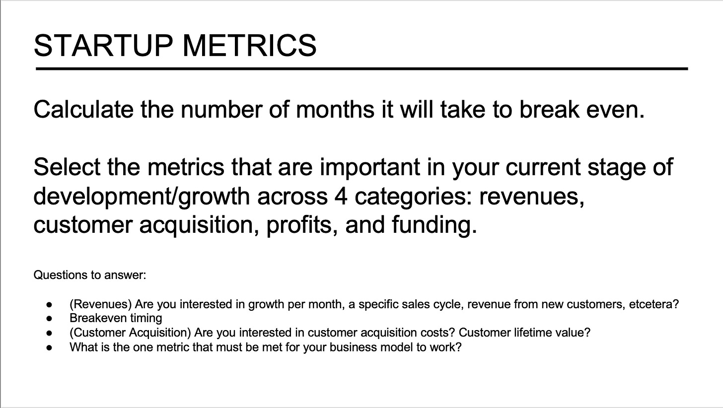 Startup Metrics. Demonstrating to stakeholders that you are focused on specific results and are measurement-driven is a positive set of founder attributes. As I have written earlier, founders must monitor many potential metrics or key performance indices (KPIs). What to measure depends on the stage of your venture's development. While the fundamental metrics change as your venture evolves, there are four performance areas related significantly to your business model: customer engagement metrics, MVP metrics, profit model metrics, and resource acquisition metrics. Additionally, founders should identify one or two critical metrics that must meet certain levels for their business model to be viable. For the reading deck, consider the essential metrics for your stage of development and highlight that one metric that matters!