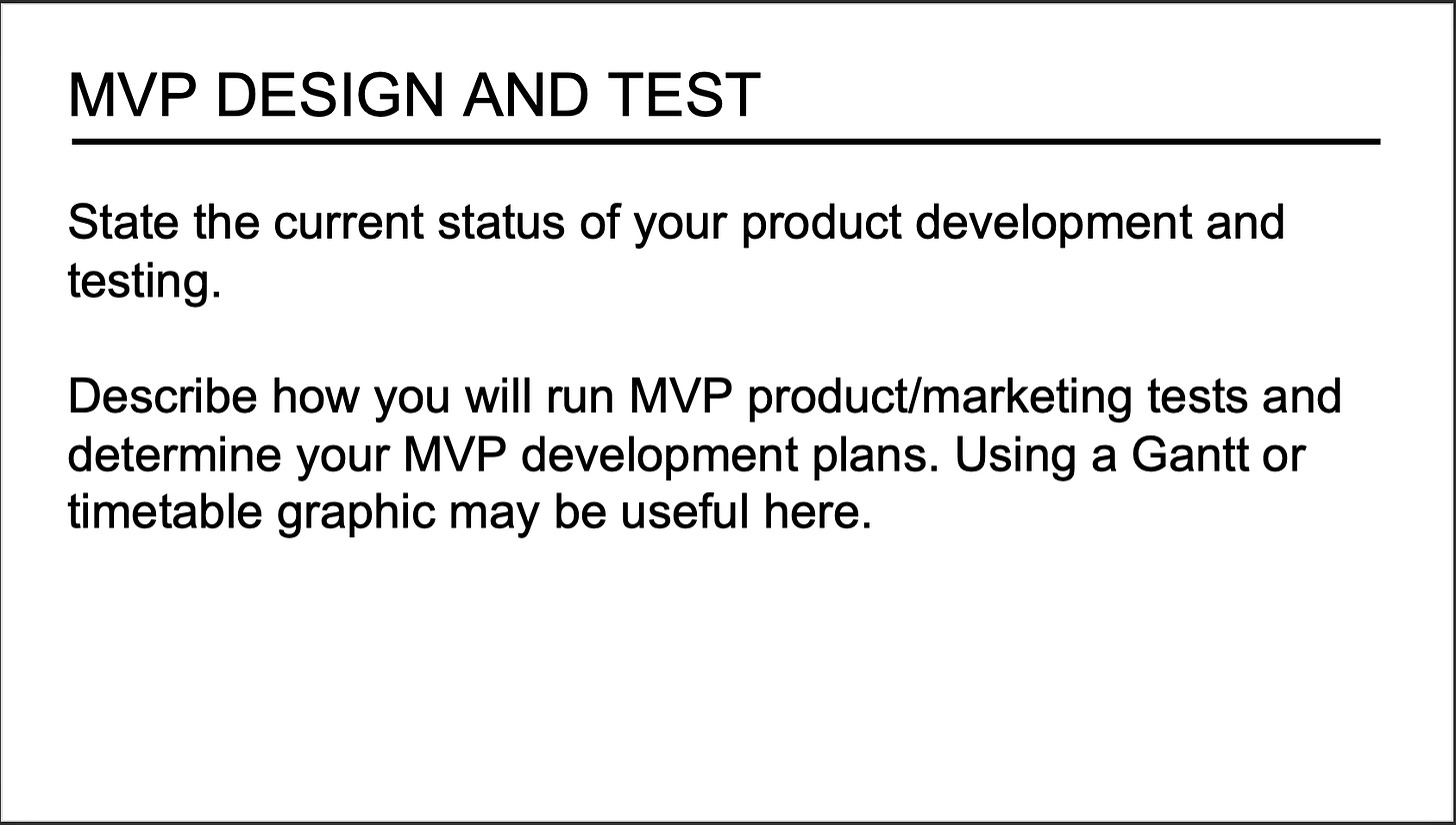 For the MVP section, you should provide details of your MVP test design and information on who participated, including participants' demographic data and results from the MVP test. In addition, you should include plans for MVP 2 and what you plan to test next based on what you have learned in the first iteration.