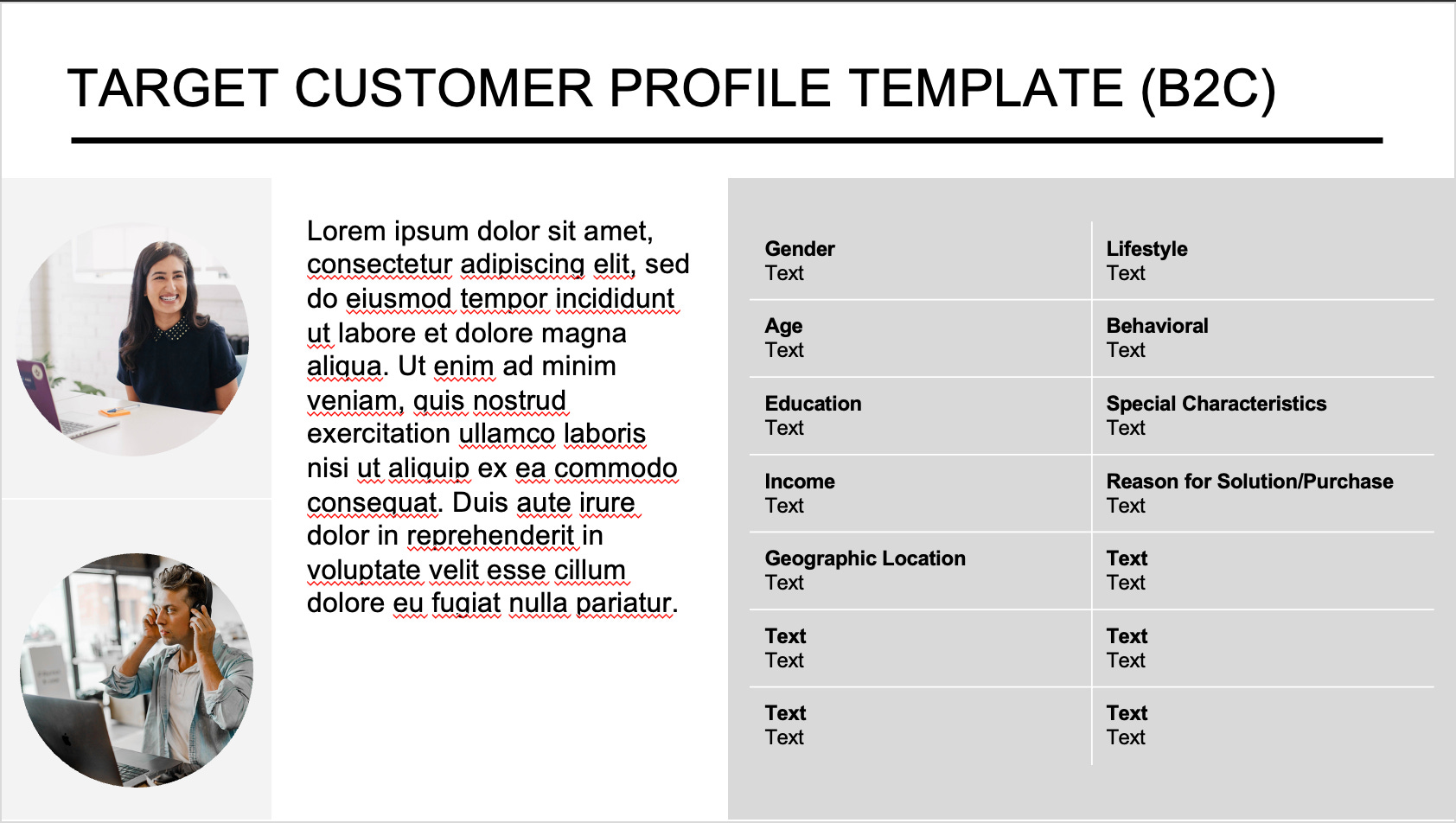 Customer Discovery Data and Findings. In this portion of the plan, you begin with a clear definition of your target customer. Here, you can present the profile of your customer base, listing important demographic and behavioral characteristics of your beachhead customers. Additionally, I suggest that you add a customer persona to go with the demographic data. A persona effectively shares your customer's story, needs, obstacles, and desired outcomes with all stakeholders.