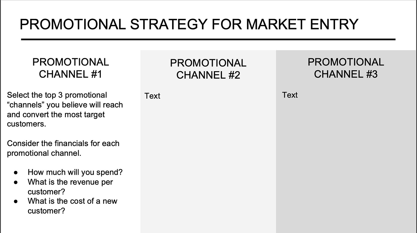 The marketing and sales strategy section describes how the business will implement the marketing plan to achieve expected sales performance. This analysis will guide the entrepreneur in establishing pricing, distribution, and promotional strategies to make the company profitable within a competitive environment. Founders should highlight a few elements in this section at this stage.